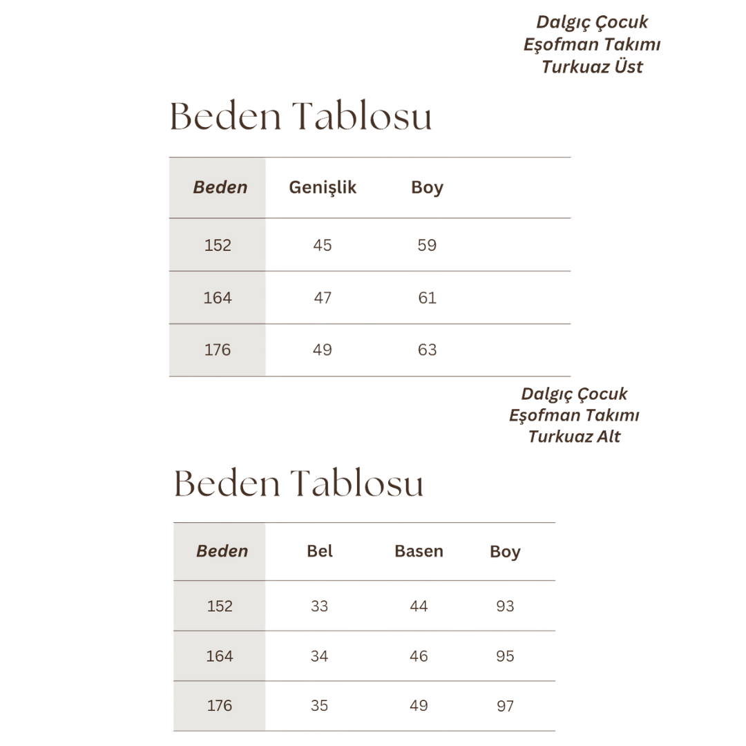 BEDEN: 152(10-11 Yaş) -164(11-12 Yaş) -176(12-13 Yaş)