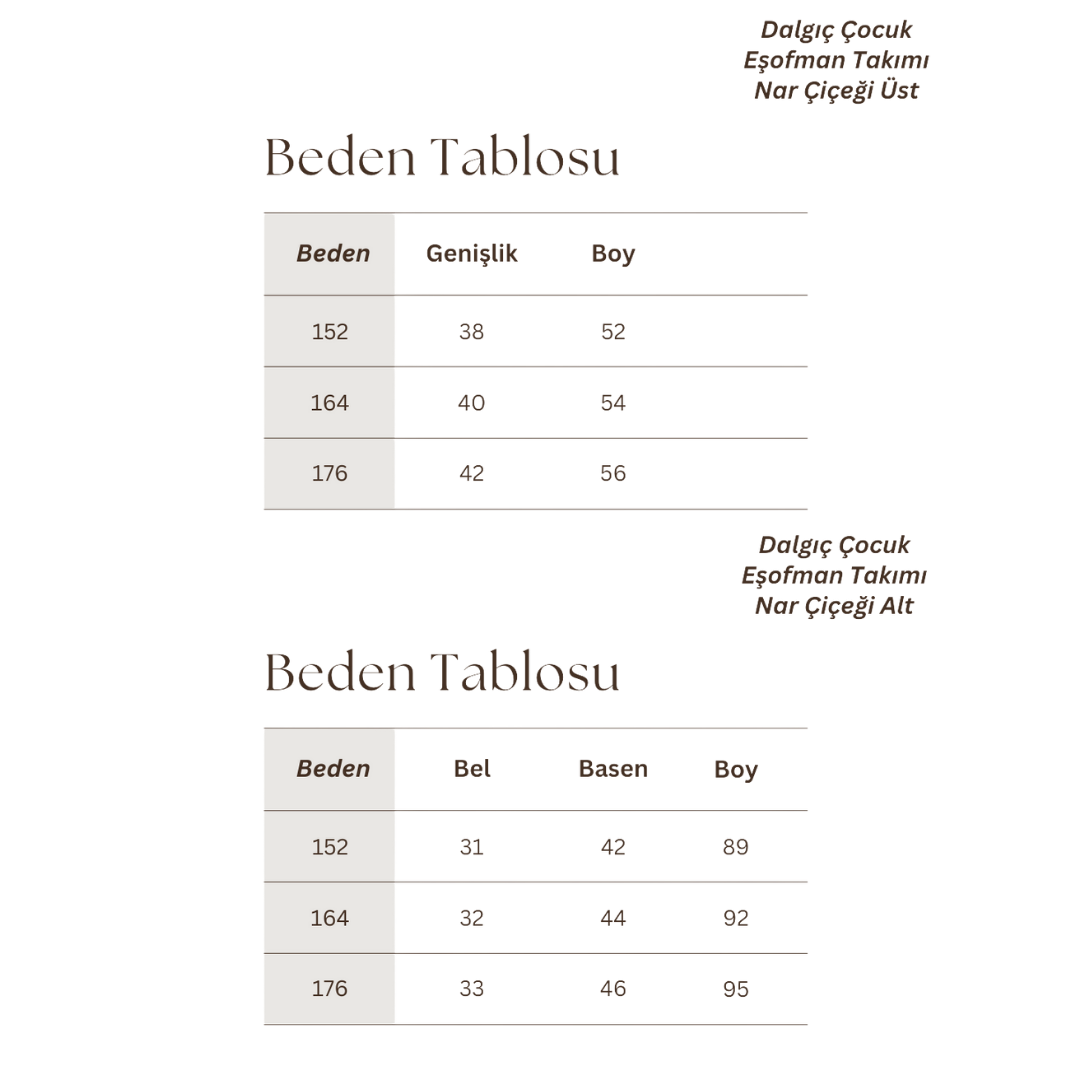 BEDEN: 152(10-11 Yaş) -164(11-12 Yaş) -176(12-13 Yaş)